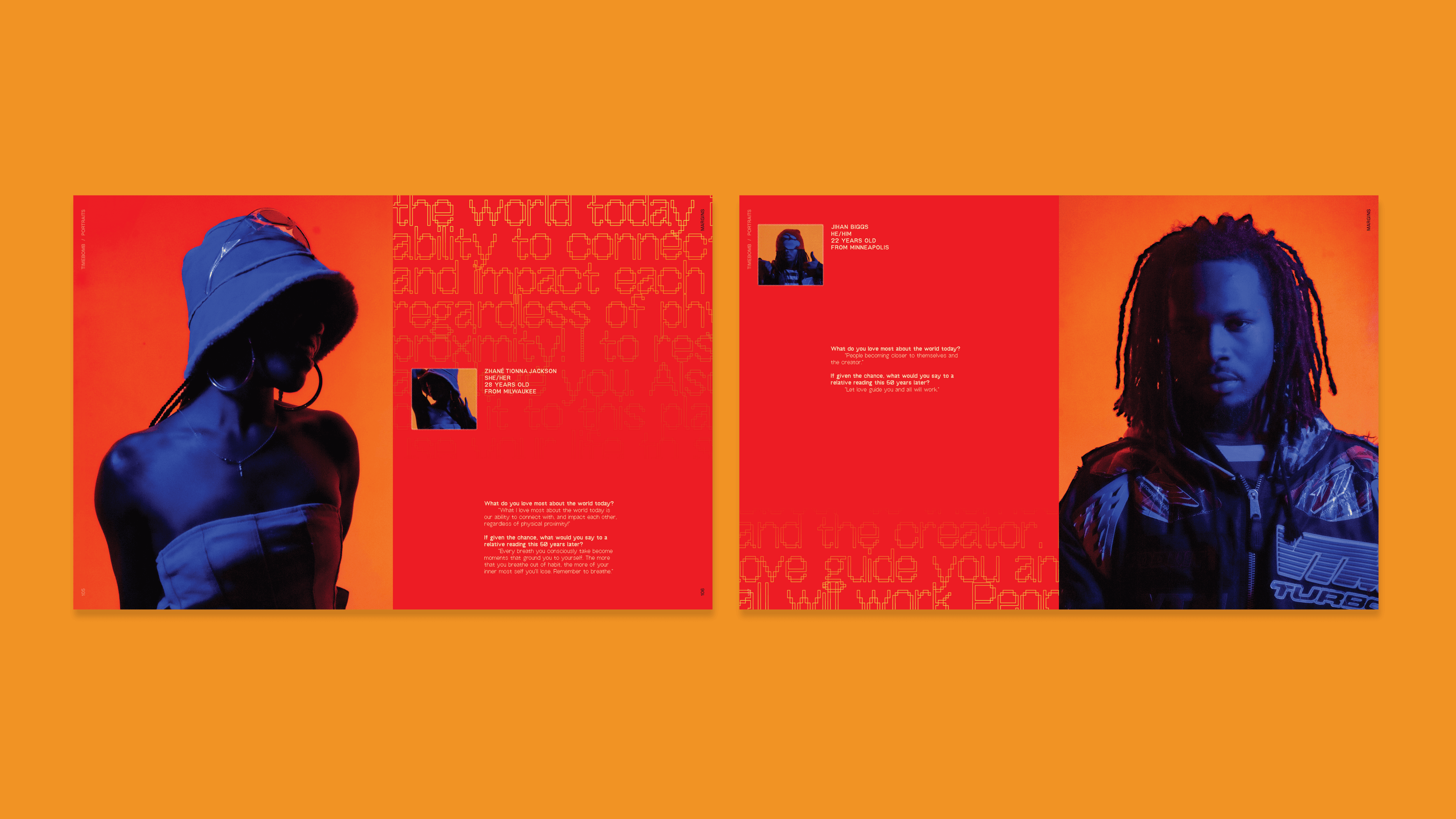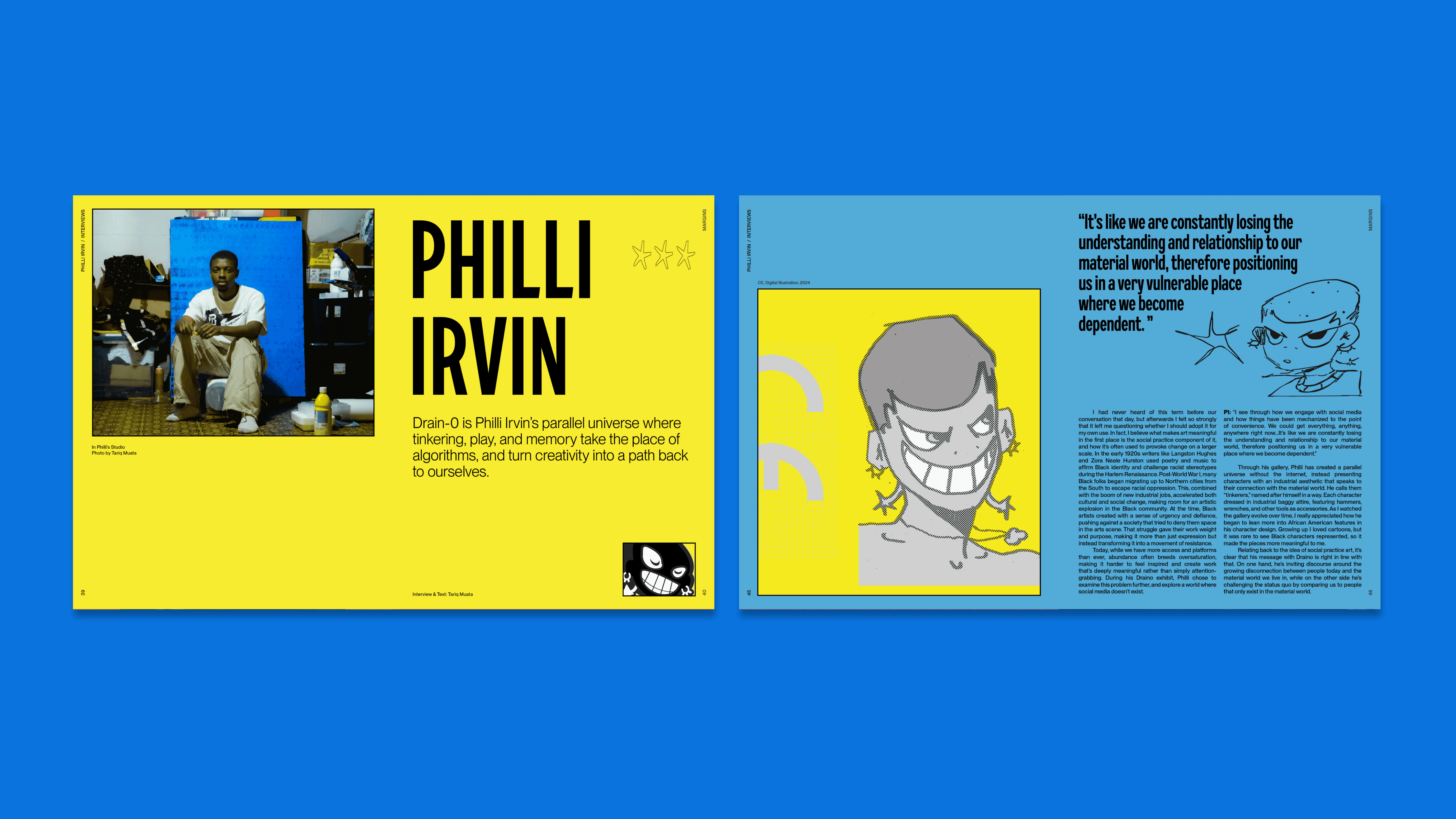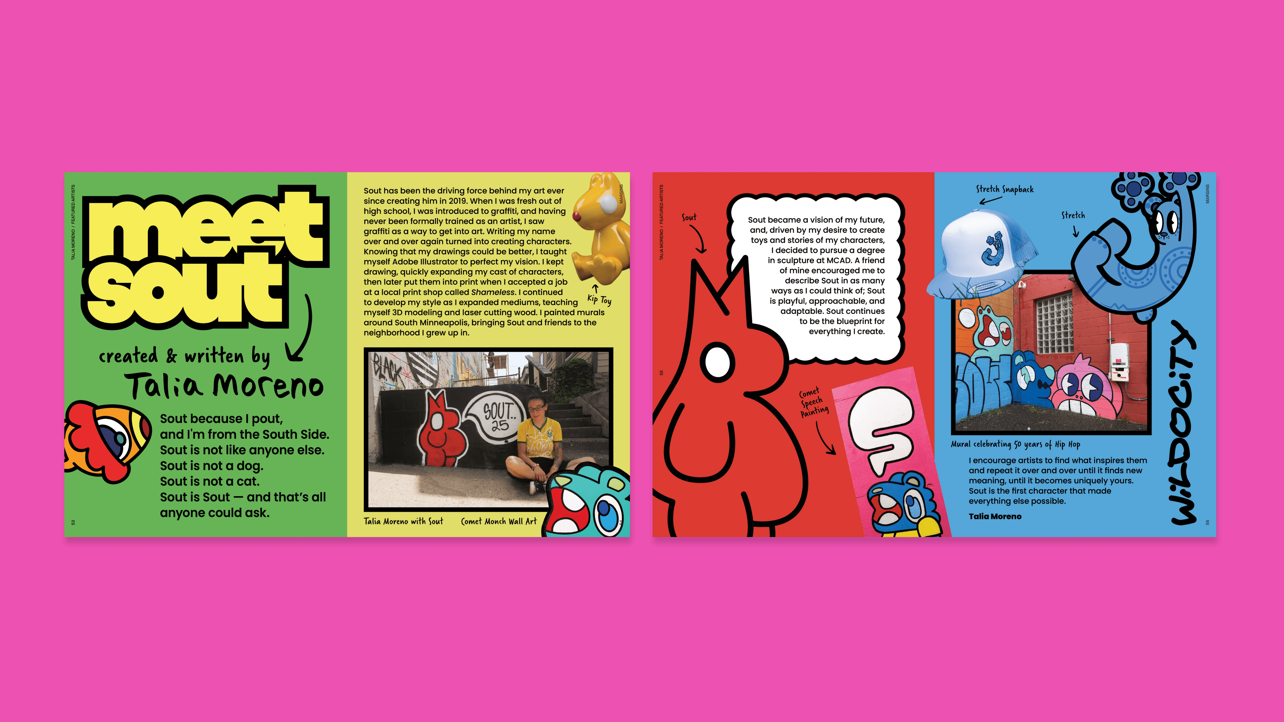 Margins is an interactive print magazine created to expand Late Bloomer’s practice into editorial and visual art. The first issue, Vision, explores how artists interpret imagination and agency through interviews and original work. The publication spans over 100 pages and features an artist gallery highlighting thirteen creatives, long-form interviews, and ten interactive pages designed to encourage engagement through prompts and hands-on activities. I led the project from concept through production, developing the visual system, editorial layout, and interactive components while collaborating with contributing artists, writers, and designers.
